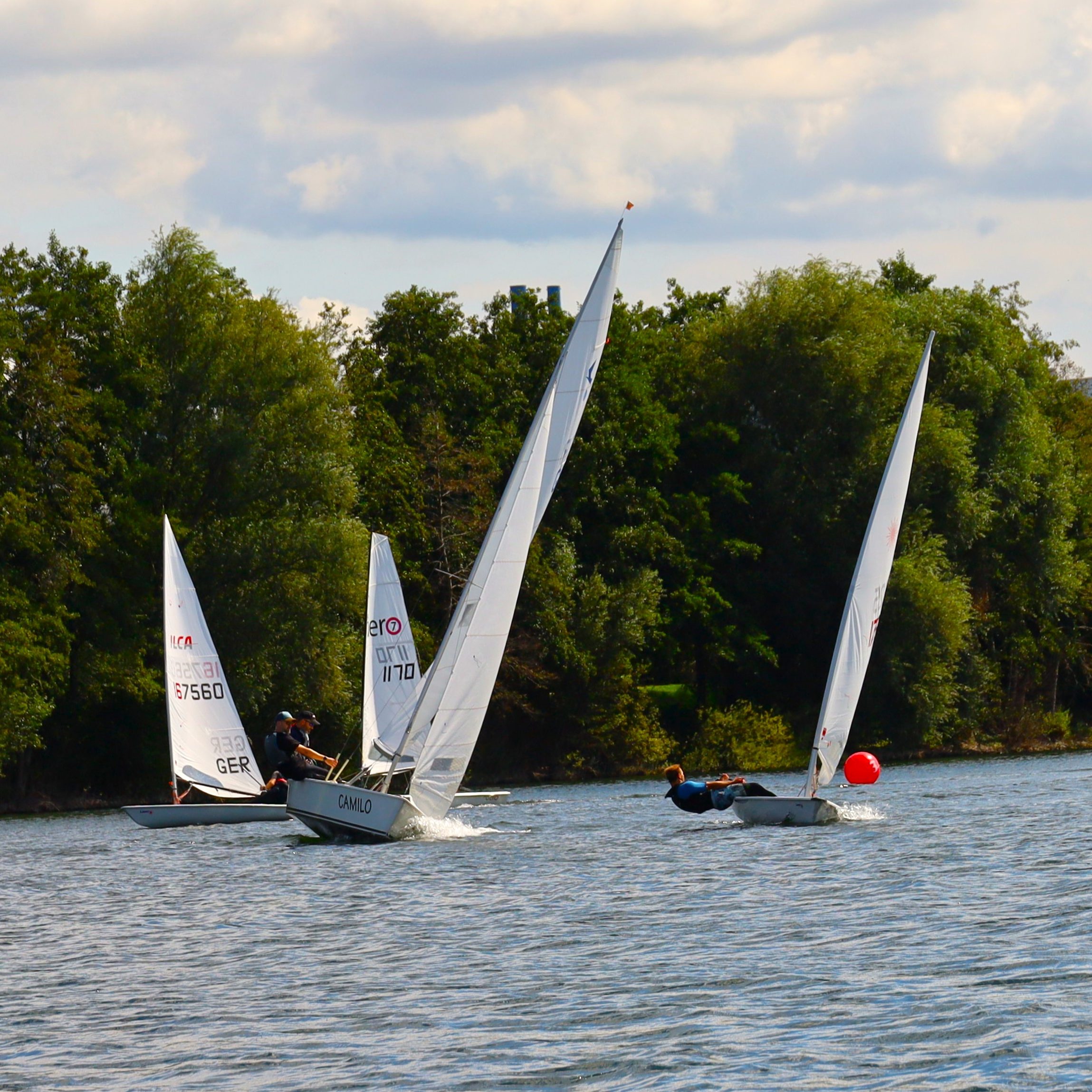Die Windvorhersage ließ viel Luft nach oben übrig für Samstag, den 23.08. Doch pünktlich zum Start des TVV Winzer-Cups 2025 um 12:00 Uhr kamen die ersten Böen, welche die Ausreitgurte der 11 Ein- und 12 Zweihandboote zum Einsatz brachten. Bei einer Durchschnittsgeschwindigkeit von 3 bft mischten sich über den Tag ruhige wie actionreiche Momente, was für abwechslungsreiche Szenen auf dem Wasser sorgte.